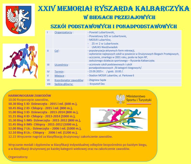 Jak co roku przez organizację zawodów uczczono pamięć posła Ryszarda Kalbarczyka. Ryszard Kalbarczyk był nauczycielem lubartowskich szkół, działaczem sportowym, wiceprezesem Lewartu, posłem na Sejm II kadencji. Zmarł w 2001 r. Co roku Szkolny Związek Sportowy organizuje Memoriał Ryszarda Kalbarczyka. Według Zbigniewa Sajdy, przewodniczącego Powiatowego SZS w Lubartowie, w biegach wzięło dziś około 500 zawodników ze szkół powiatu lubartowskiego. Biegi odbywały się w kategoriach Igrzyska Dzieci i Igrzyska Młodzieży.