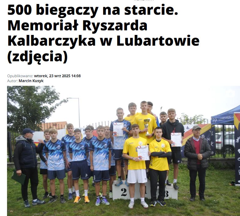Jak co roku przez organizację zawodów uczczono pamięć posła Ryszarda Kalbarczyka. Ryszard Kalbarczyk był nauczycielem lubartowskich szkół, działaczem sportowym, wiceprezesem Lewartu, posłem na Sejm II kadencji. Zmarł w 2001 r. Co roku Szkolny Związek Sportowy organizuje Memoriał Ryszarda Kalbarczyka. Według Zbigniewa Sajdy, przewodniczącego Powiatowego SZS w Lubartowie, w biegach wzięło dziś około 500 zawodników ze szkół powiatu lubartowskiego. Biegi odbywały się w kategoriach Igrzyska Dzieci i Igrzyska Młodzieży.
